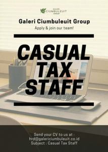 Galeri Ciumbuleuit Group membutuhkan posisi CASUAL TAX STAFF.